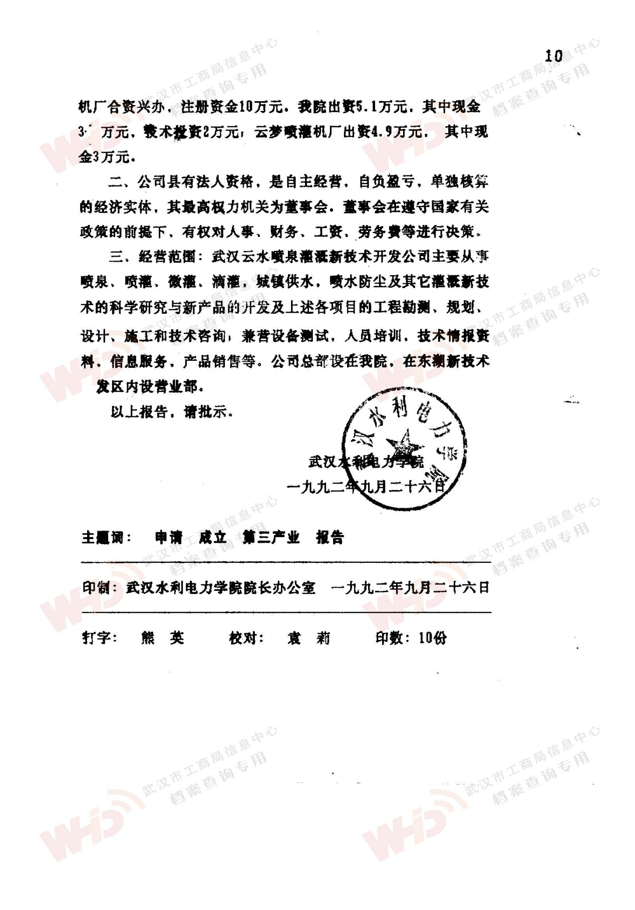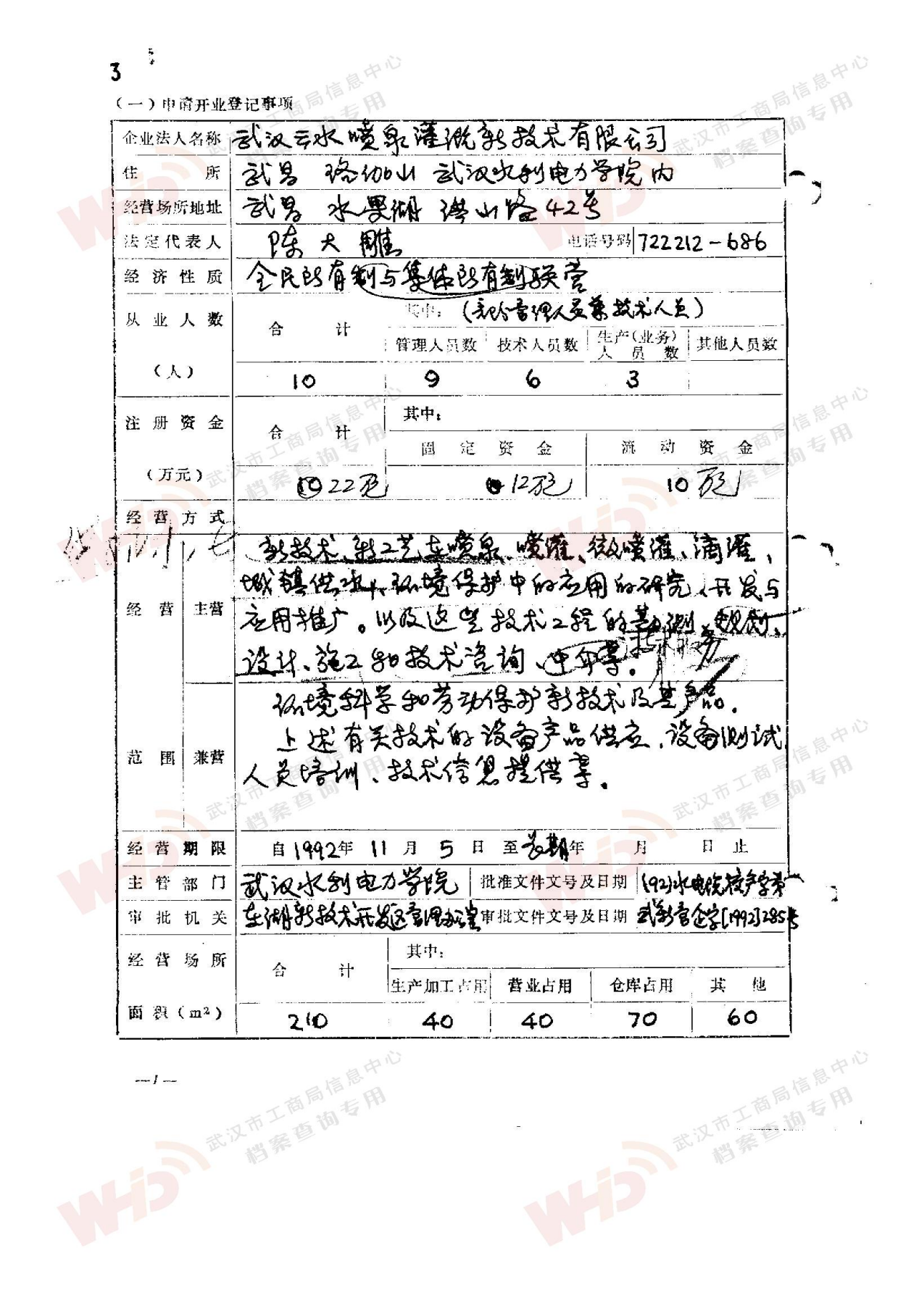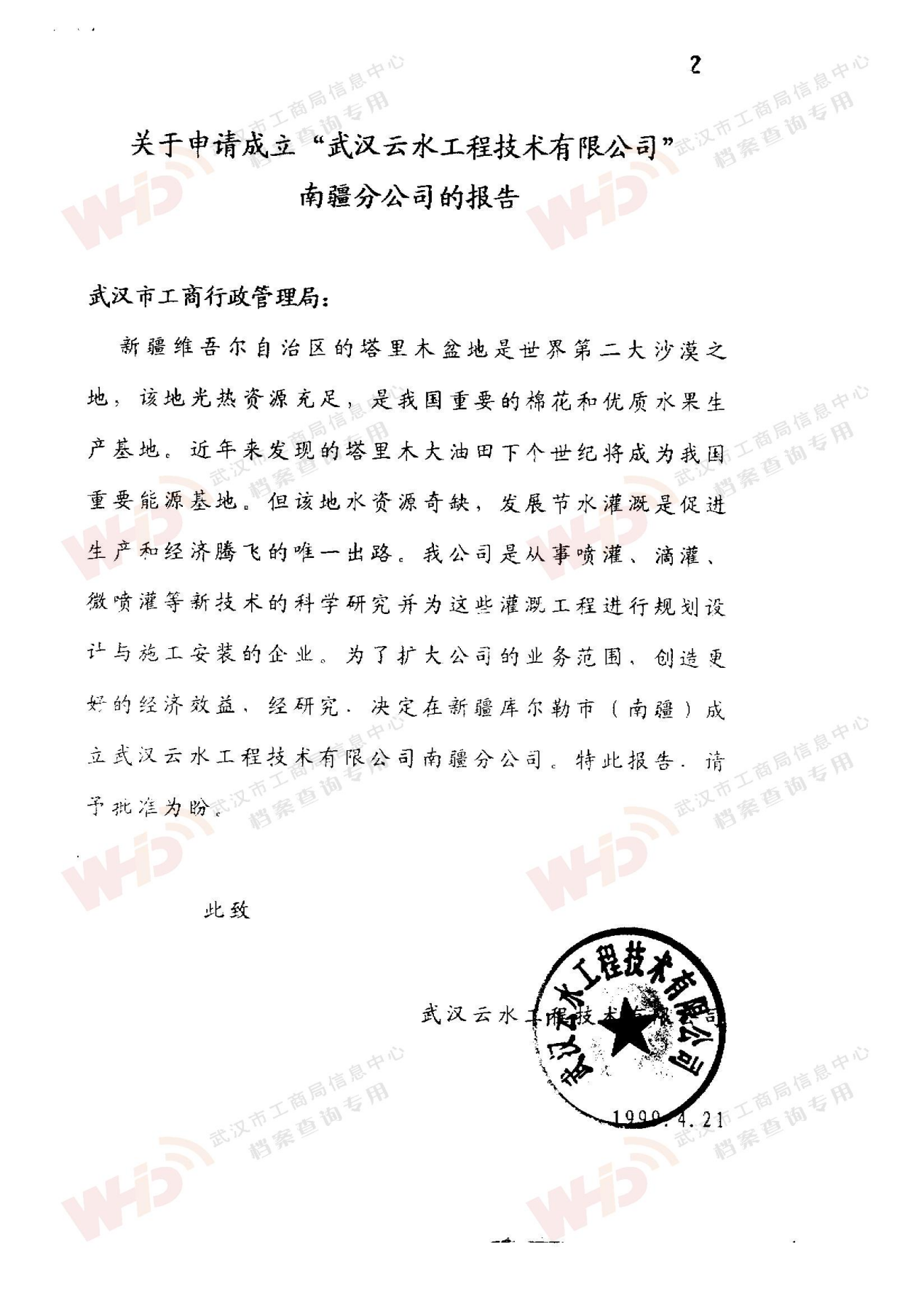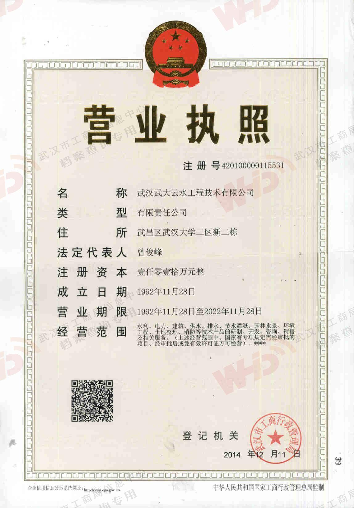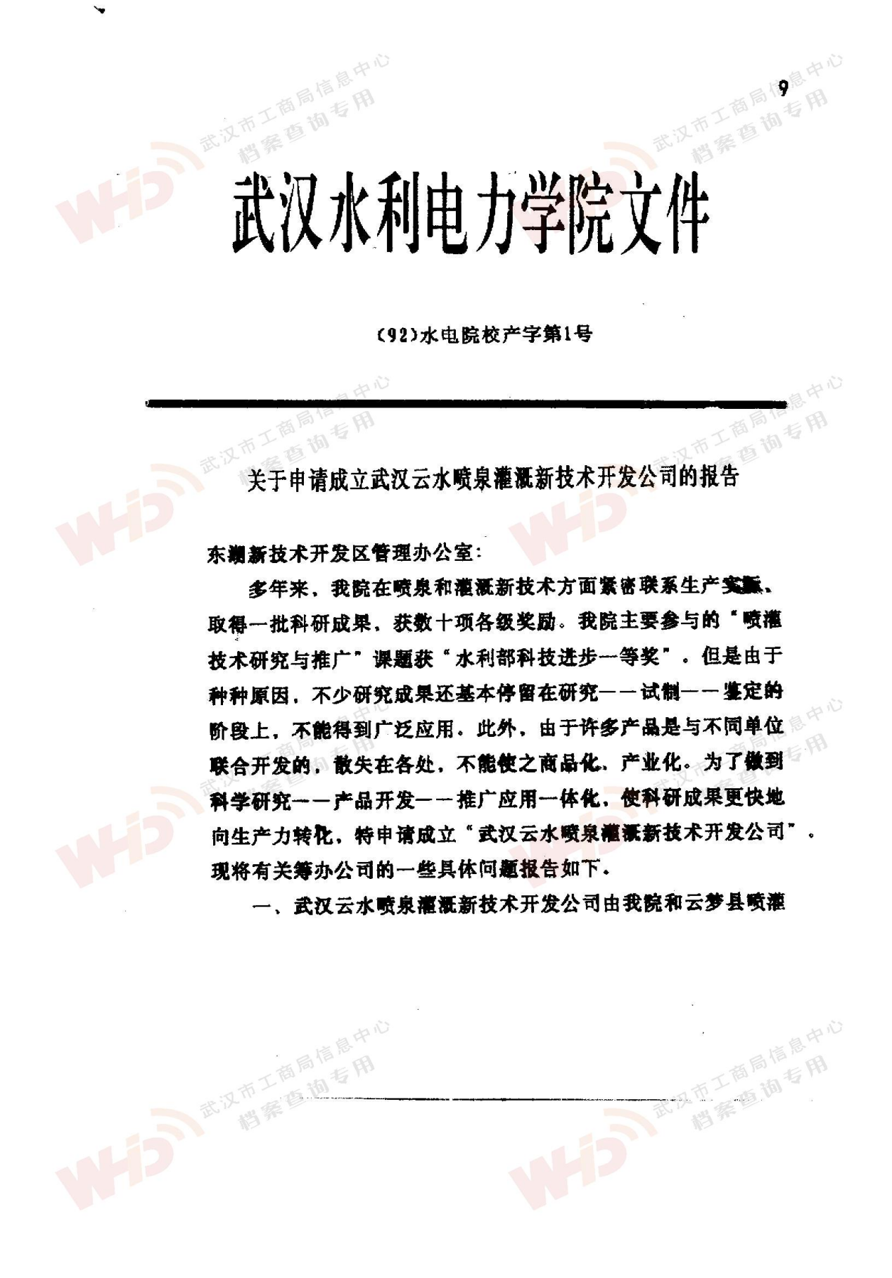 - 1992年9月26日申請成立:武漢云水噴泉灌溉新技術開發(fā)公司