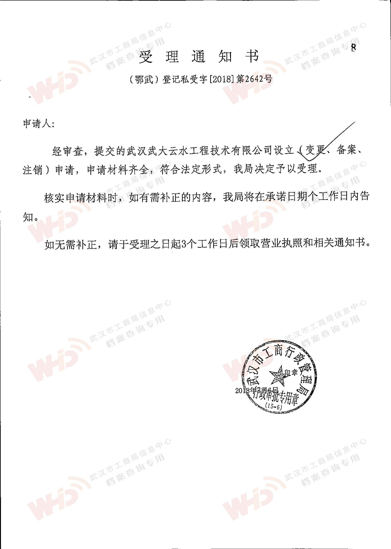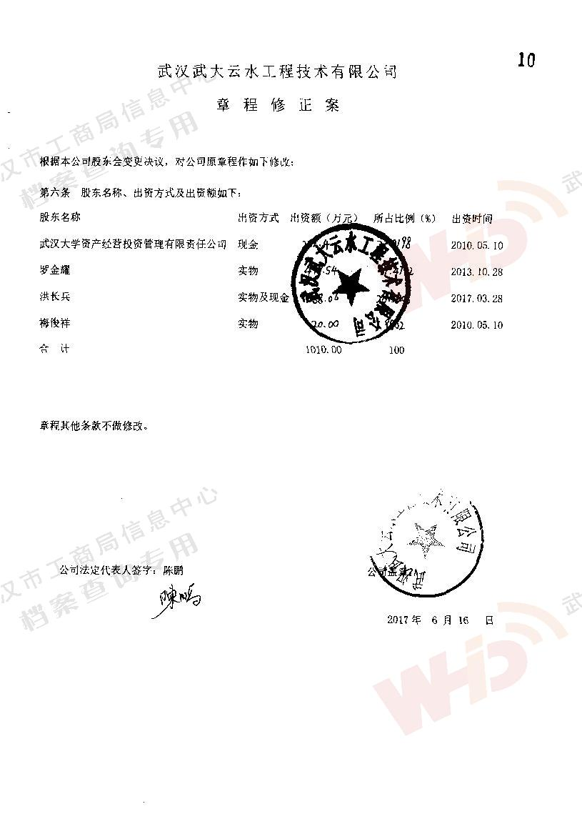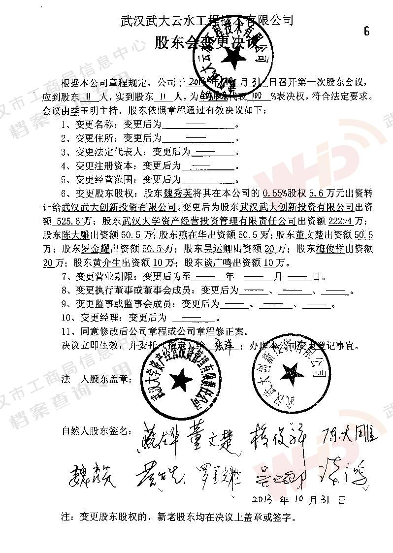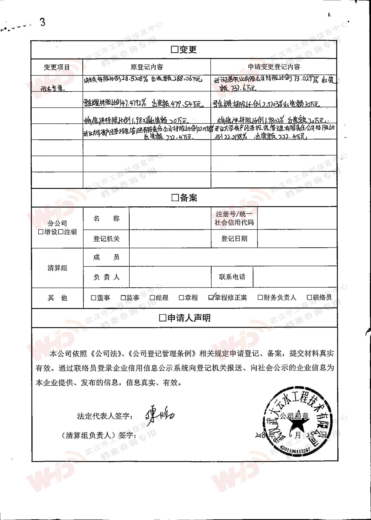- 2018年5月15日武漢正譽實業(yè)集團有限公司入股武漢武大云水工程技術有限公司。