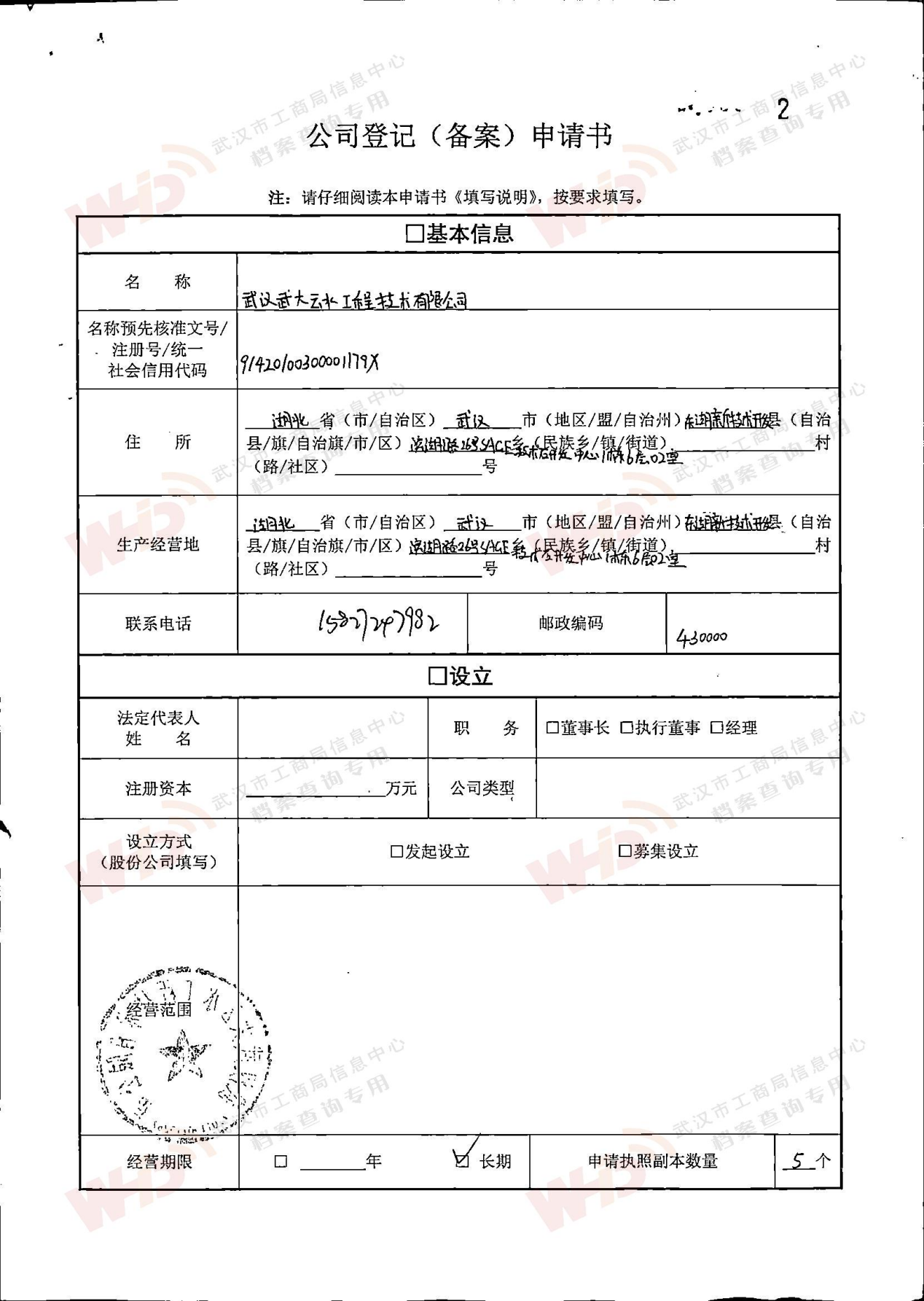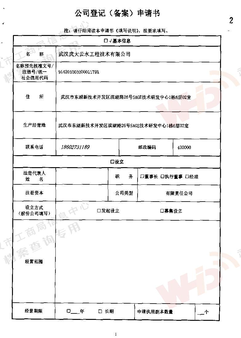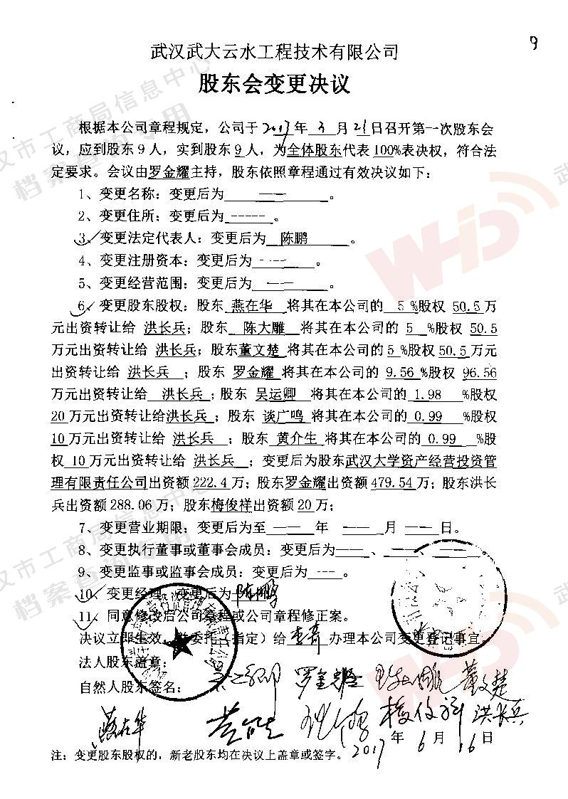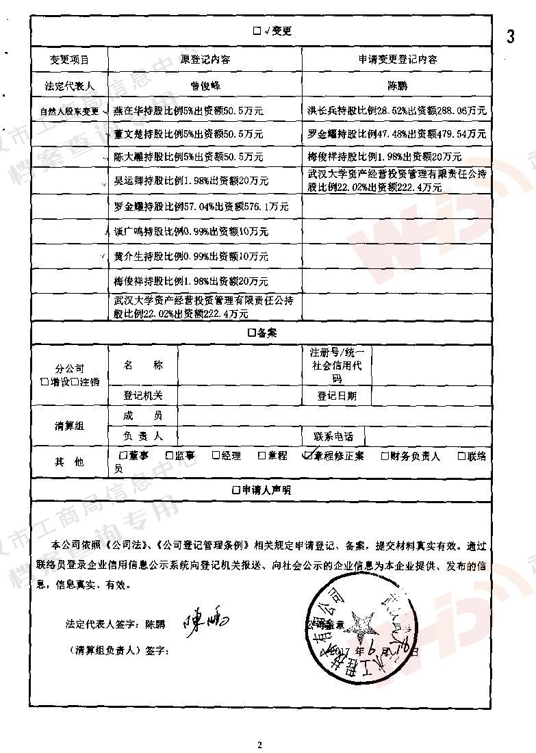 - 2018年5月15日武漢正譽實業(yè)集團有限公司入股武漢武大云水工程技術有限公司。