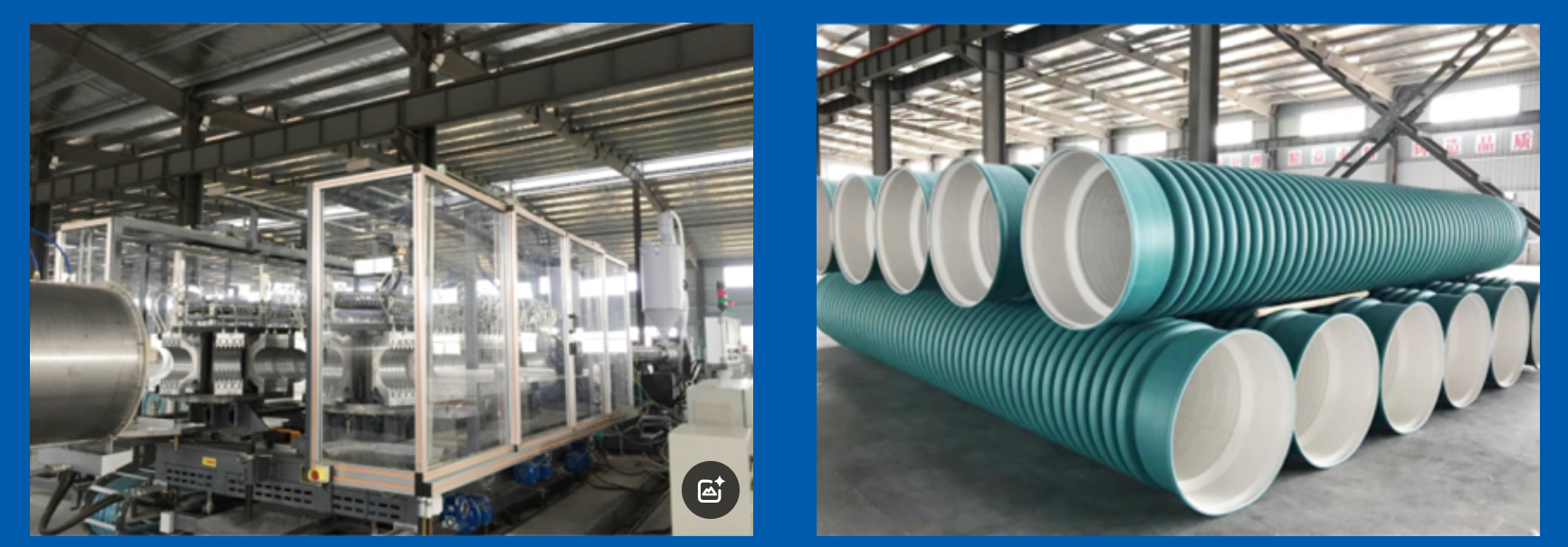 公司擁有的雙壁波紋管生產(chǎn)線,工藝領(lǐng)先,效率高。 HDPE雙壁波紋管是以高密度聚乙烯為主要原料的一種新型輕質(zhì)工程管材,它分別由內(nèi)外擠出機(jī)共同擠出,一次成型,內(nèi)壁平整光滑,外壁成階段波紋,具有環(huán)狀結(jié)構(gòu)外壁,具有優(yōu)異的環(huán)剛度和良好的強(qiáng)度與韌性。 具有抗壓能力強(qiáng),安裝便捷牢靠,使用壽命長,綜合成本低等優(yōu)點(diǎn)。